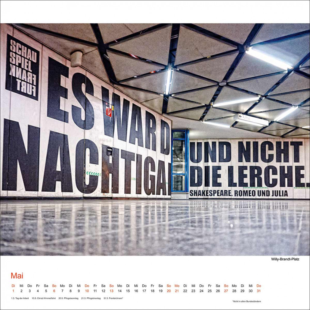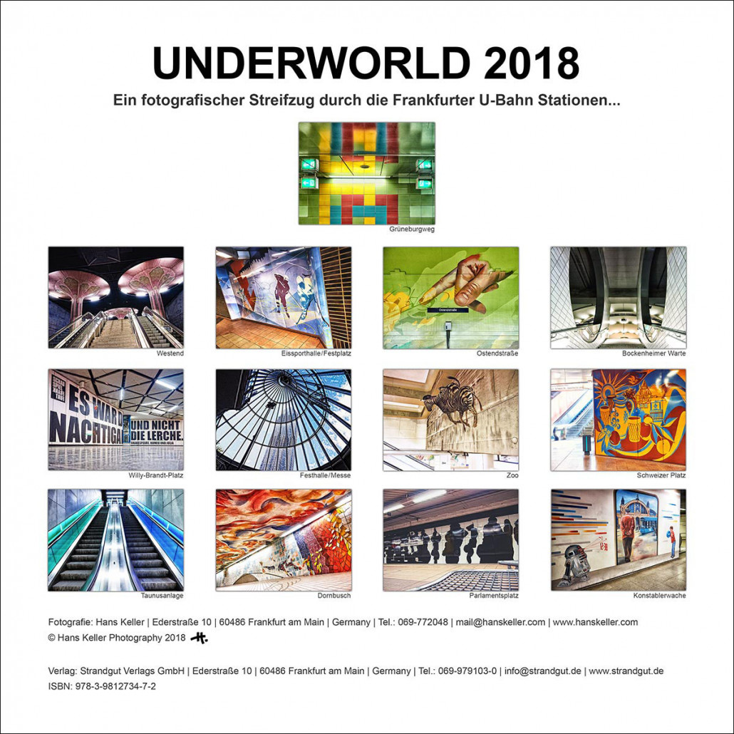 Als Fortsetzung der zum Teil bereits 2015 entstandenen Fotografien „Underworld“, erscheint zum Jahresende der neue handsignierte Frankfurter Wandkalender „Underworld 2018“.